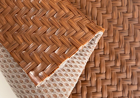 該藤編網(wǎng)是我司自主研發(fā)設(shè)計的一款仿竹藤網(wǎng),材質(zhì)是PE塑料編藤,立體編織,韌性非常好,品質(zhì)好性價比也很高,門幅是1.6米,條厚0.85mm,克重約1200g/㎡,可應(yīng)用在屏風(fēng)、柜門、高檔家具、裝飾、酒店、會所裝飾、茶樓、吊頂、貼墻、工藝品飾面、櫥柜、家具靠背、椅墊、隔斷、燈具等,上上好的戶外家具選材!