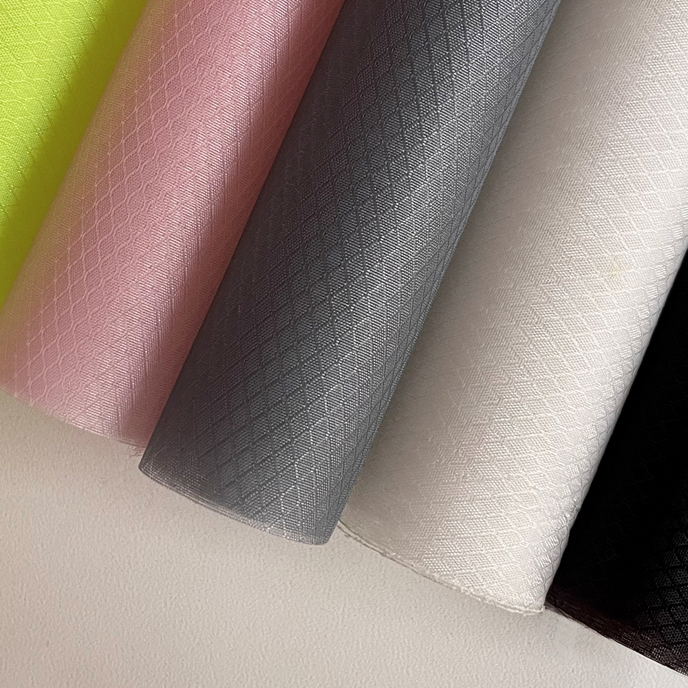 這種織物采用兩種編織技術(shù),提花和條帶編織。它是指使用單根復(fù)絲進(jìn)行織造和提花織造。這種尼龍面料的形狀是由復(fù)絲編織的方格和單絲提花技術(shù)編織的小四角組成的復(fù)合面料。