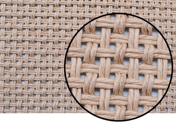 ZP22023高端音箱防塵布,門幅是1500mm,克重700gsm,采用高端紙草材質(zhì),該材質(zhì)的紙草光潔、柔韌又富有彈性,紙面上的草莖纖維成經(jīng)緯交織的天然紋樣,非常美觀。具體制作工藝:先把整張紙切成一條條紙條,再把紙條加捻成細(xì)紙繩,再編織成網(wǎng)布。